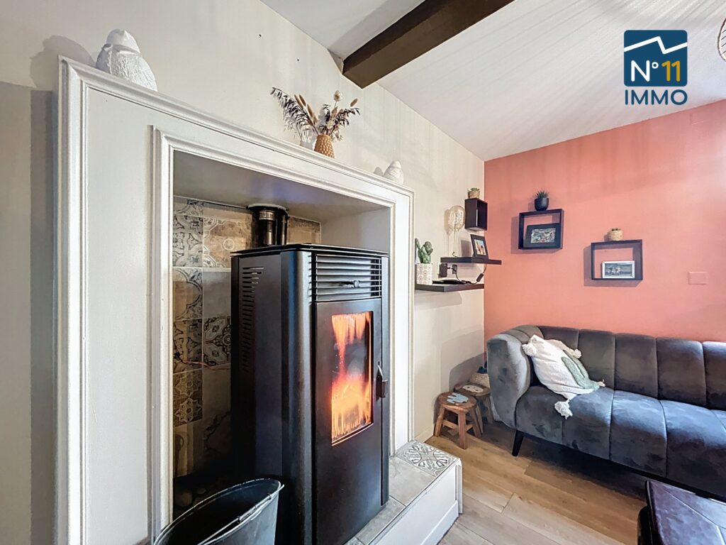 Logement économe, le chauffage s’effectue par un poêle à granulés hydro et les huisseries sont en double vitrage.