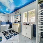 Vous trouverez une pièce de vie de 44 m² avec poêle à bois, une cuisine ouverte, une buanderie, un WC indépendant, une salle de bains avec douche et baignoire, trois chambres avec placards et une salle de jeux de plus de 50 m².