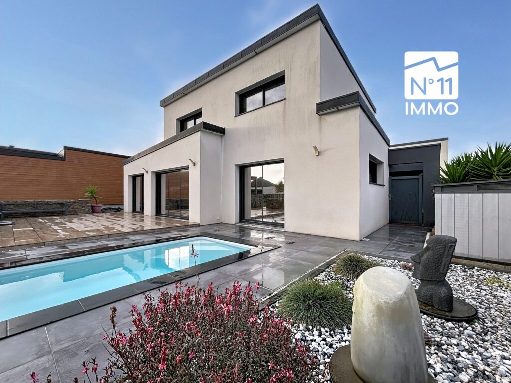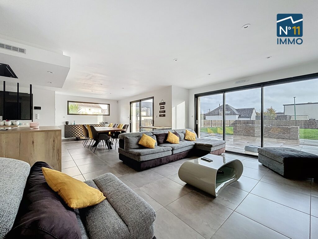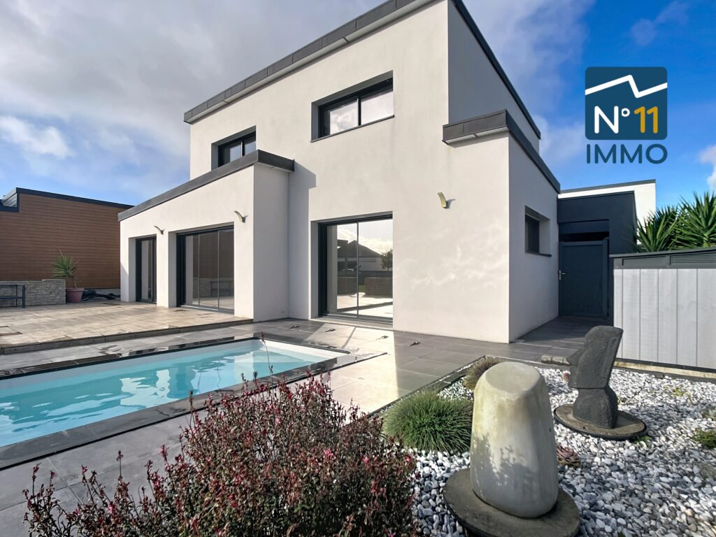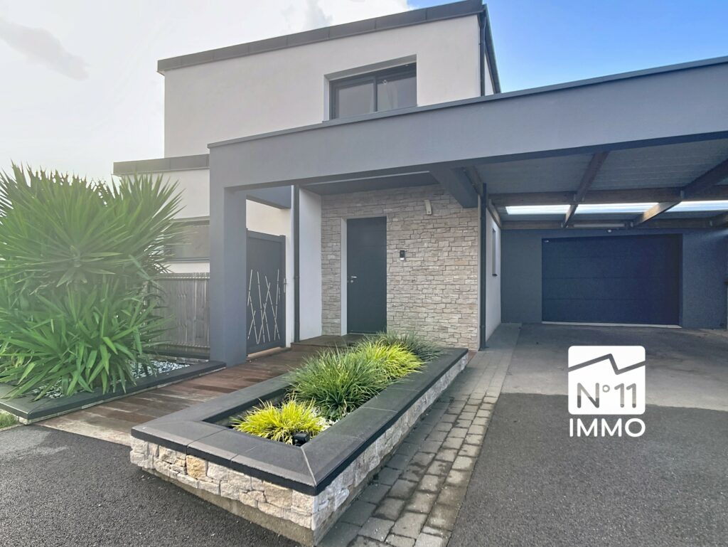 Au quotidien, vous apprécierez les atouts d’une construction moderne et fonctionnelle : performance énergétique du logement optimale, jardin paysagé, carport de 35 m², visiophone et garage de 27 m².
