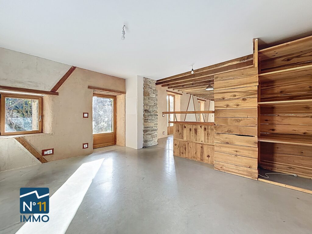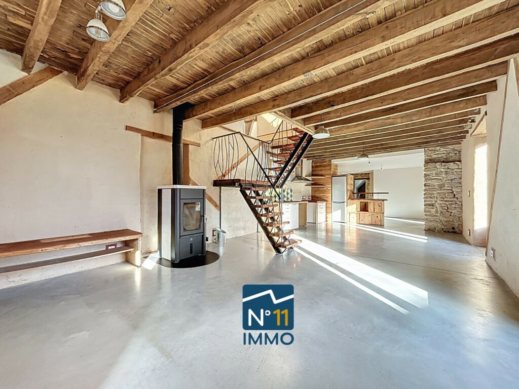 Maison en pierre rénovée sur une parcelle de terrain de 834 m². Vous trouverez en rez-de-chaussée: une entrée, un salon/séjour de 46 m² avec poêle à bois, une cuisine simple ouverte et une salle de bains. L’étage dessert une salle d’eau avec WC et quatre chambres dont une de 7,80 m² au sol.